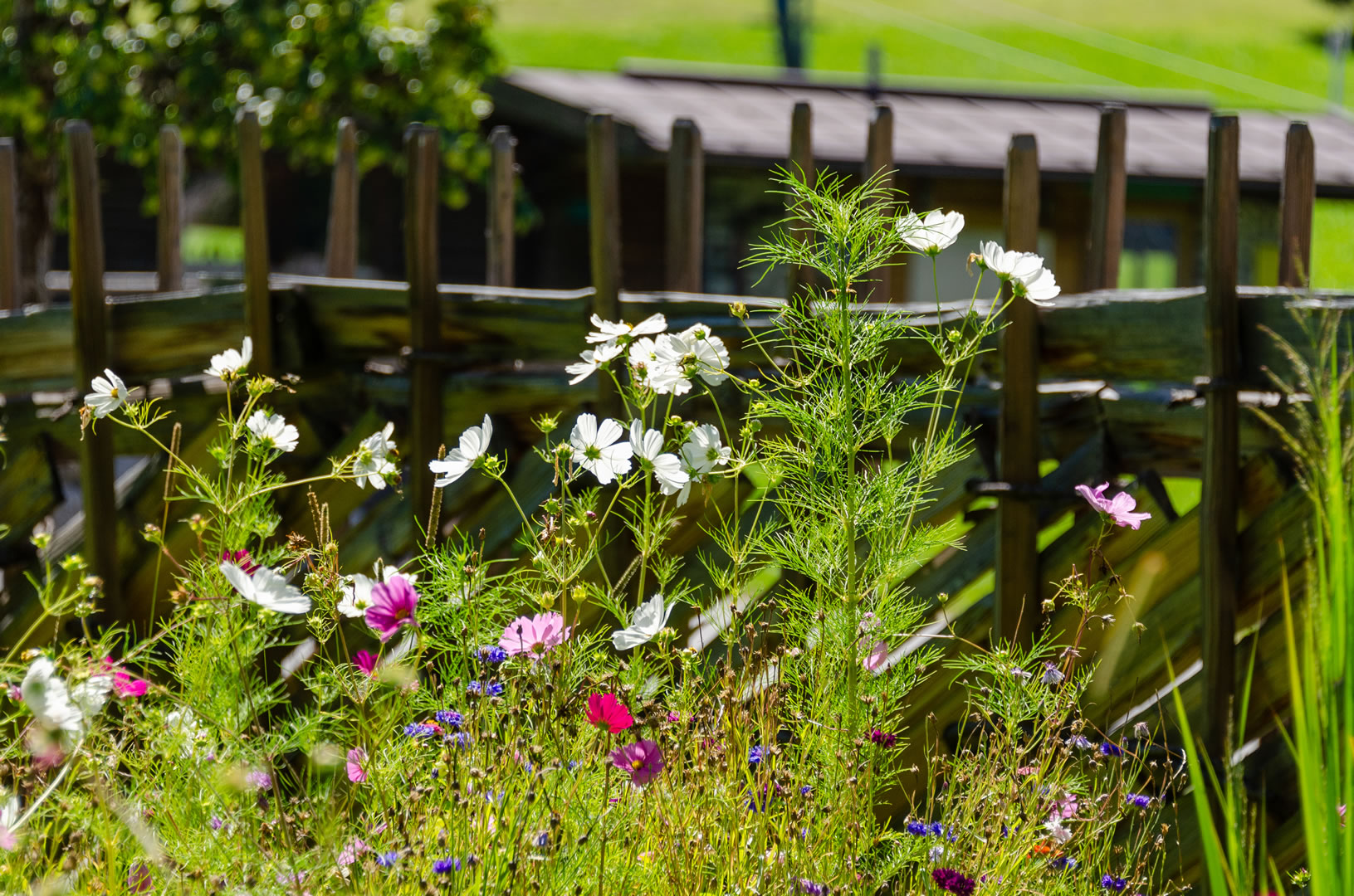 Entlang der historischen Zäune blühen Blumenwiesen aus mehrjährigen Wildblumen. Das sieht nicht nur schön aus, es hat auch einen ökologischen Sinn.