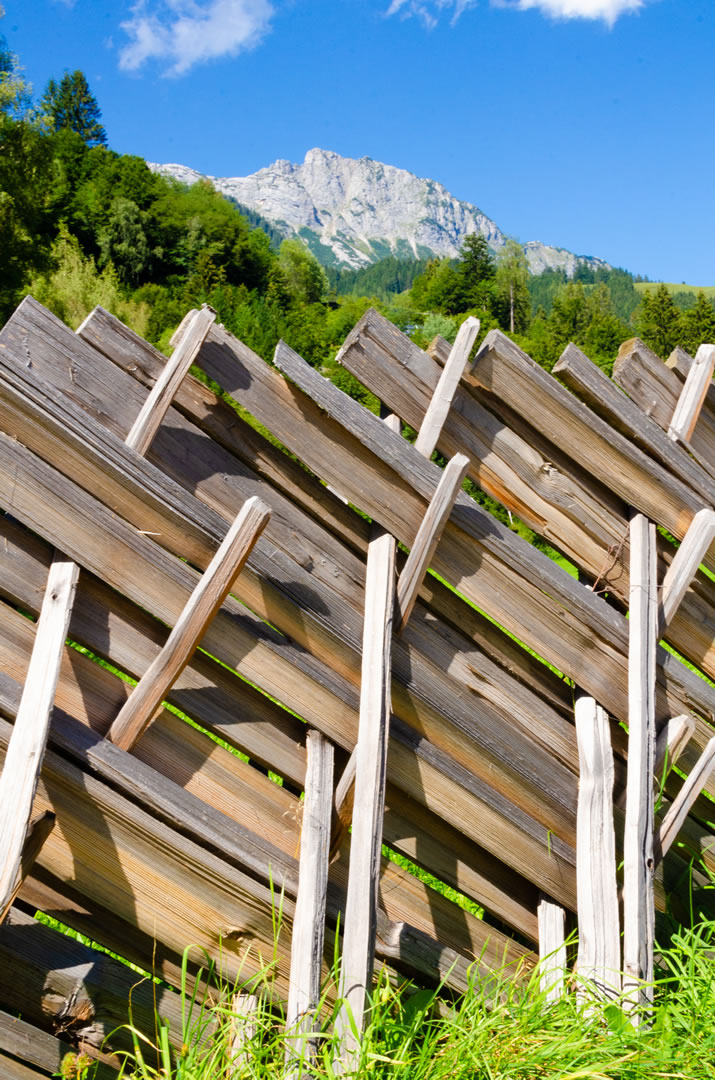 Der Pinzgauer Zaun ist wohl der bekannteste der historischen Zäune in unserer Heimat – er trägt ja auch ihren Namen. Er besteht aus besonders witterungsbeständigem Lärchenholz.